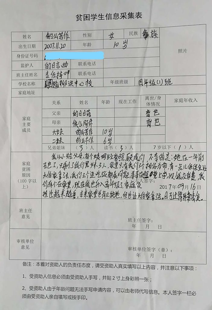 母,去世 兄弟姐妹3人,读书3人,7岁以下1人 |