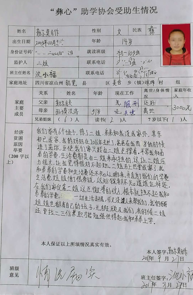 母,去世 兄弟姐妹6人,读书2人,7岁以下1人 |